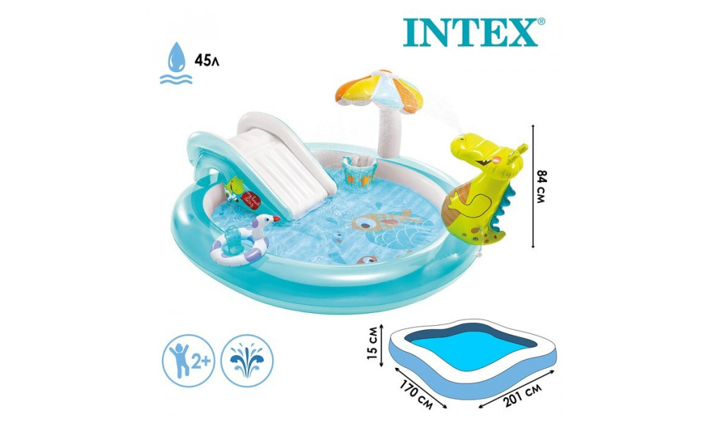 Детский бассейн с фонтаном Морское приключение станет любимым местом для игр у вашего ребенка! Он включает в себя водную горку, теневой навес "Грибок", разбрызгиватель "Крокодильчик", круг-уточку и надувное ведерко. Красочный дизайн приглянется как девочкам, так и мальчикам. К игровому центру бассейну можно подключить обычный шланг, и тогда на носу крокодила включится забавный фонтан, который освежит в жаркую погоду! Дети с удовольствием будут плескаться в воде и кататься с горки, поднимая каскад брызг и наслаждаясь летними забавами.