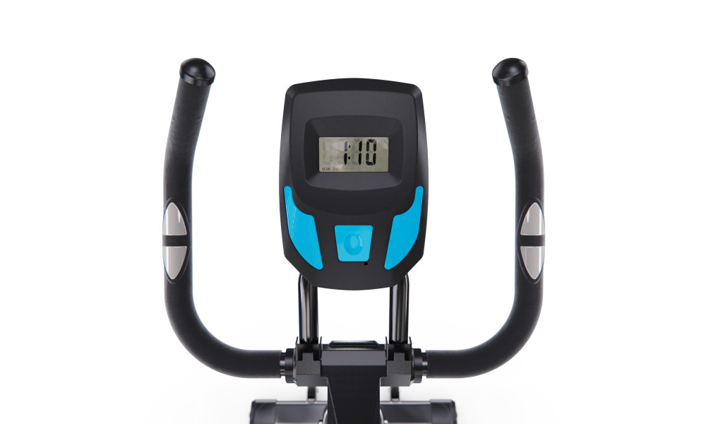 Монохромный LCD дисплей отображает такие параметры как время, скорость, дистанция, калории, пульс. Для работы консоли используются батарейки типа “ААА”, батарейки не входят в комплект поставки.