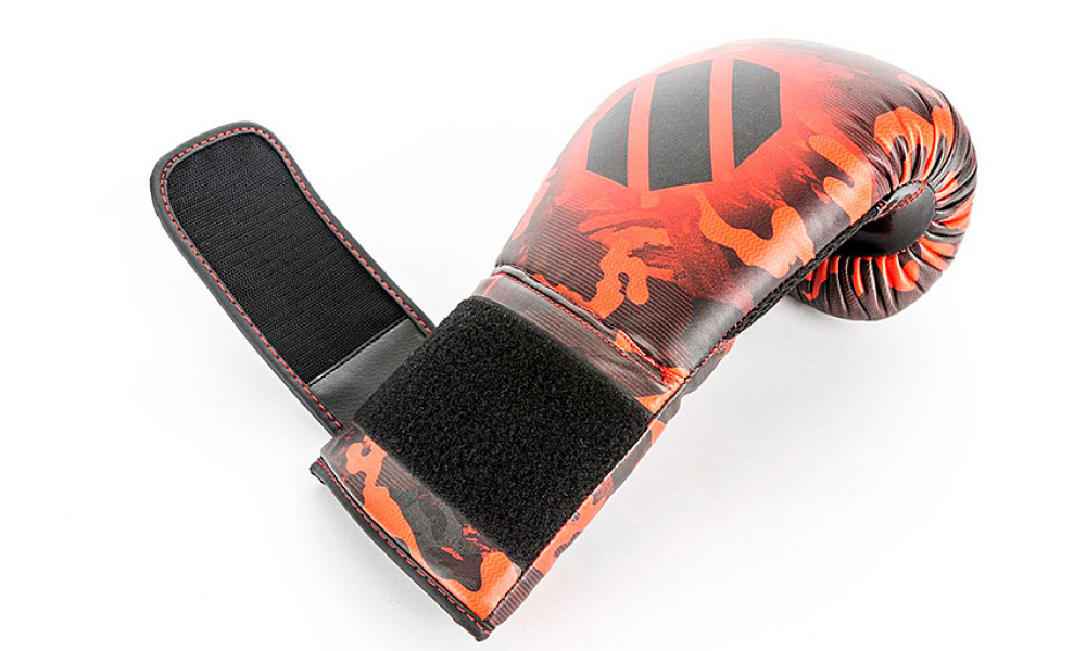 Перчатки для бокса CAMO UFC PRO изготовлены из крепкого износостойкого полиуретанового материала (PU) толщиной 0,5 мм. Неопреновая подложка толщиной 2,5 мм и слой IMF-пены обеспечивает максимальную защиту костяшек и большого пальца. Для охлаждения поверхности рук, а также для быстрой сушки предусмотрена перфорация кожи на ладонной поверхности перчаток. Надежную фиксацию и комфорт обеспечивает система застежки из твердой кожи на липучке.